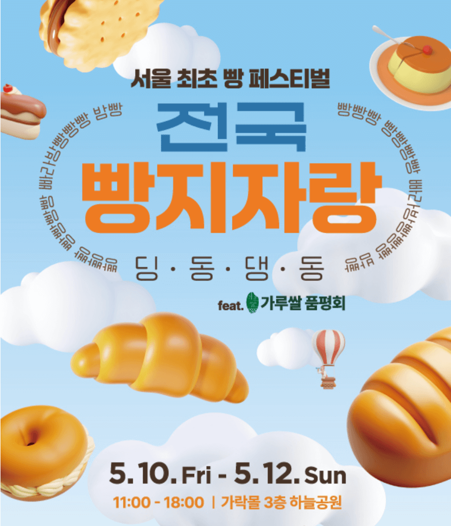 꼭 함께가 아니더라고 전국의 다양한 빵이 총집합하는 서울 최초 빵축제 "전국빵지자랑" 꼭 참여해서 즐거운 주말 행복하나 추억 만들어보시기 바랍니다.
