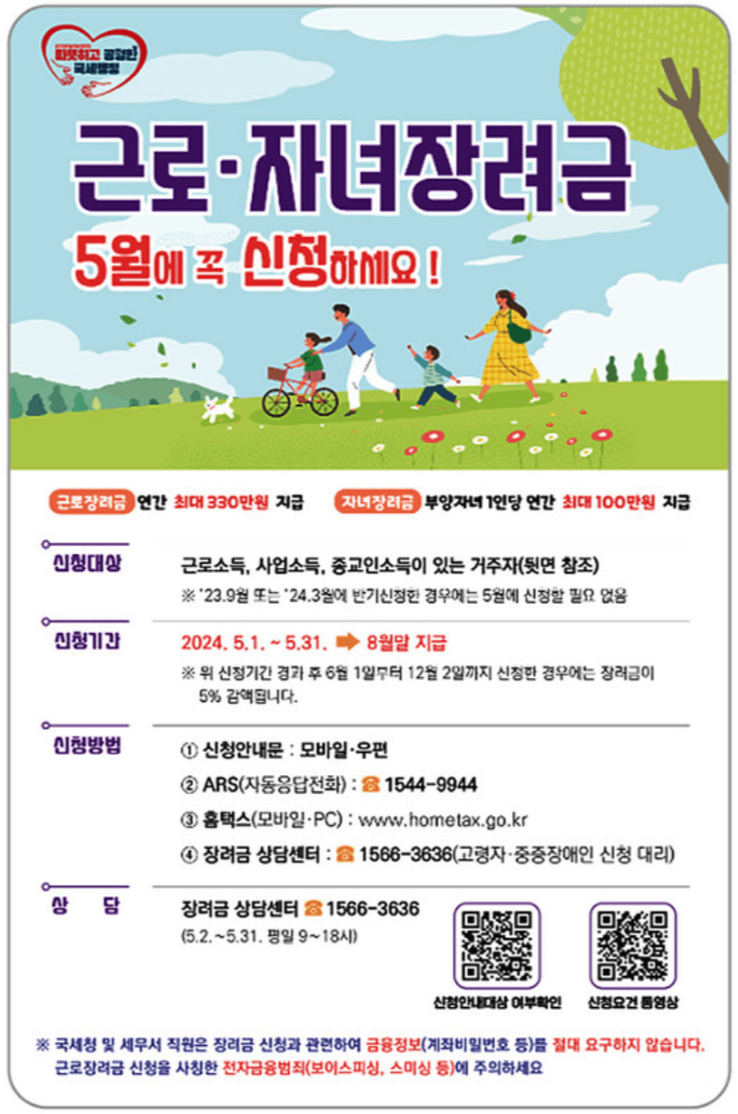 모든게 어렵게 느껴진다면 근로장려금 상담센터의 전화문의를 통해 알아보시고 신청하시기 바랍니다.