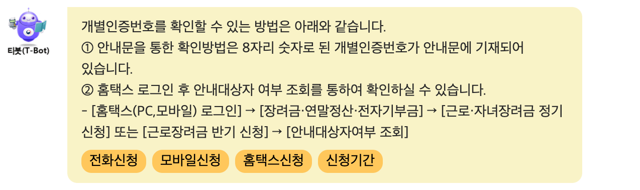 (단, 국세청에 등록된 본인 연락처로 연락한 경우는 개별인증번호 생략가능)